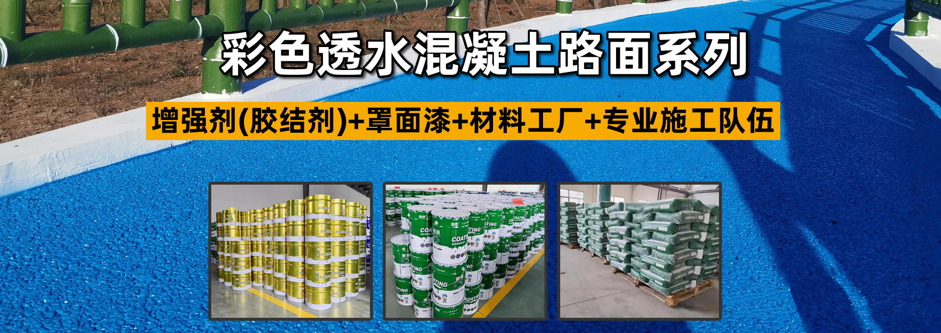 • 產品中心 透水混凝土路面系列 露骨料透水混凝土系列 透水膠粘石地坪系列 瀝青路面改色系列 冷拌彩色瀝青路面系列 彩色路面防滑系列 壓花地坪系列